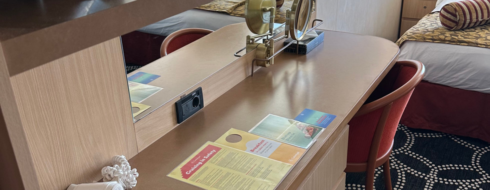 We stayed in an outside cabin (no balcony) that has not been renovated, so we were awash in brown 1990 tones the entire time. It wasn't bad - but it wasn't luxury. The food was probably some of the best we've had on a cruise. It's Mediterranean-focused and they launched new menus when we were sailing. The best part was the service: this could've easily been a luxury line with the service we received from our room steward and service staff in the restaurants and lounges.